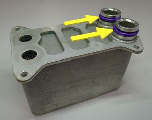 NotaLubrique las juntas tóricas con aceite ND-11. Compruebe que el enfriador esté completamente asentado en el Supercolector antes de instalar las fijaciones. No las apriete todavía