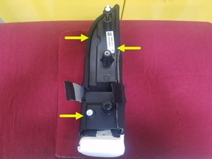 - Suelte los clips (3 uds.) que fijan el guarnecido del refuerzo izquierdo de la 2.ª fila al sustrato del refuerzo interior del asiento de la 2.ª fila.