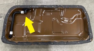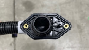 - Quite los pernos (2 uds.) que fijan el tubo de entrada del sistema de conversión de energía a la cubierta de acceso frontal de la batería de alta tensión y retire el tubo de la cubierta.