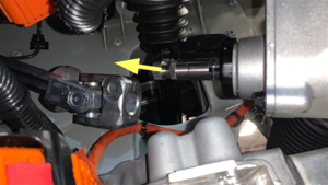 - Deslice el eje intermedio de la columna de dirección hacia abajo y hacia el eje de entrada de la cremallera de dirección.
