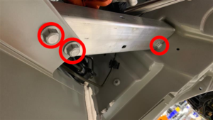 Quite los pernos (3 uds.) que fijan el soporte de la base de pedales izquierda a la carrocería.