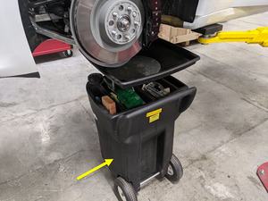 - Coloque un recipiente de drenaje de aceite debajo de la esquina delantera izquierda del vehículo.