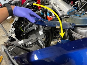 Retire el perno que sujeta el soporte del faro izquierdo al panel lateral izquierdo.