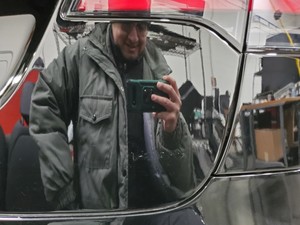 Instale la película delantera en el distintivo con letras Plaid, utilice un rodillo para juntas para aplicar presión, deje que cada letra se adhiera completamente al portón trasero y, a continuación, retire la película del distintivo.