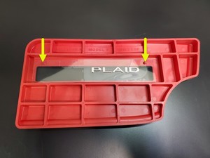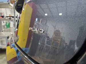 - Inspeccione visualmente el distintivo con letras Plaid y compruebe que está correctamente instalado. Limpie cualquier suciedad.