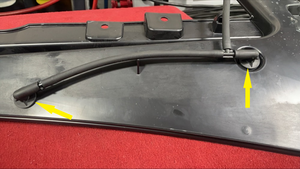 Retire los clips (4 uds.) que sujetan el panel de la pantalla de la cubierta del limpiaparabrisas al vehículo.