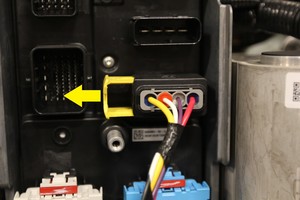 Nota2 conectores de bloqueo. Compruebe que las pestañas de bloqueo amarillas estén completamente abiertas. Inserte los conectores y el mecanismo comenzará a acoplarse