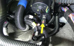 Desconecte el sensor de la manguera de suministro del tren de transmisión.