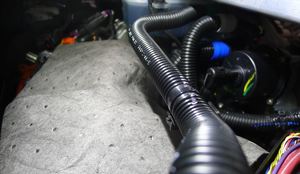 Instale el clip que sujeta el Supercolector con la manguera de suministro de la bomba de la batería en la batería de baja tensión