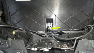 - Instale el conjunto de la defensa delantera, pero no instale todavía la unidad de almacenamiento del vano del motor ni los faldones. Consulte Conjunto de defensa - Parte delantera (Desinstalación e instalación).