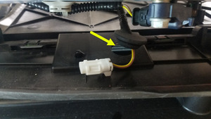 - Suelte el bloqueo del conector y, a continuación, desenchufe el conector del actuador del obturador de la rejilla activa.