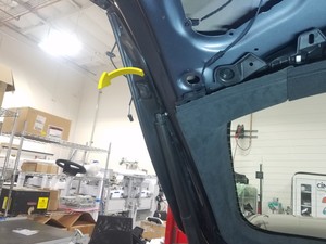 - Coloque el conjunto del sensor antiatrapamiento del portón trasero izquierdo en el vehículo.
