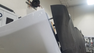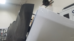 Coloque la faldilla en el conjunto de la defensa delantera y, a continuación, coloque las tuercas (2 uds.) que fijan la faldilla al conjunto de la defensa.