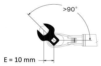 If the angle from the extension to the torque wrench is less than 90° (Figure 3), input E as a negative number.