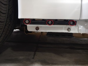 Installez les boulons (x3) qui fixent le support de fixation gauche du bas de caisse avant à la carrosserie.
