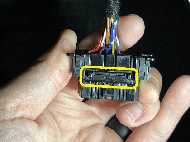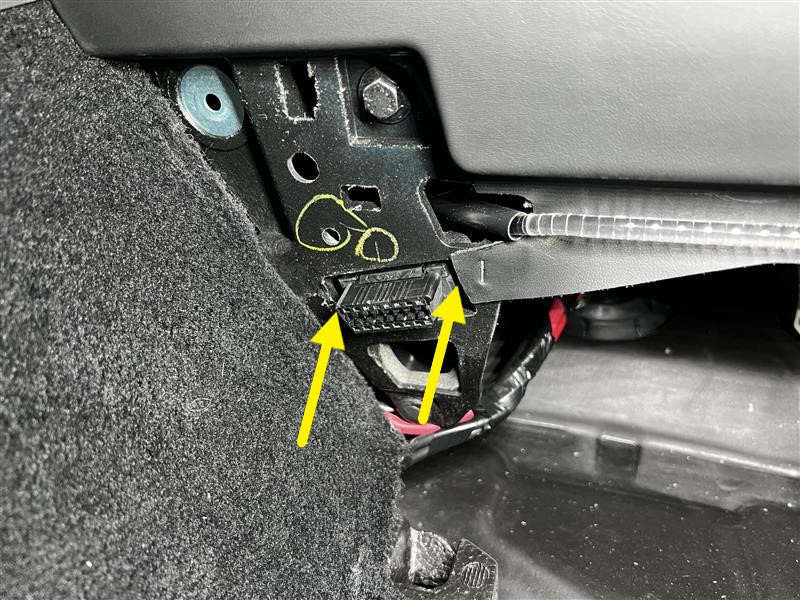 - Installez le connecteur OBD2 sur l’ensemble du coussin gonflable de genoux du siège de gauche.