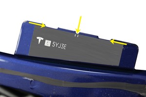 Remarque2x repères. Une assistance est recommandée. Faites preuve de prudence autour des deux petites repères en haut du pare-brise. Utilisez un matériau de protection pour éviter d’endommager la grille du haut-parleur et la plaque du NIV.