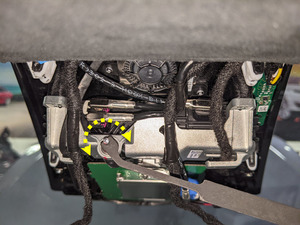 Remarque1x vis, T25, 3,5 Nm. Déployer le pare-soleil pourrait offrir un dégagement supplémentaire facilitant le travail.