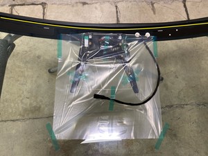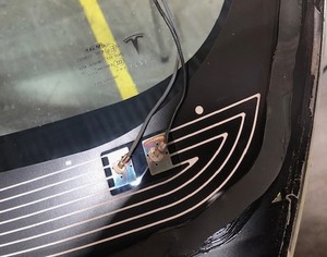 Fixez le connecteur du ventilateur et de la grille de chauffage au pare-brise à l’aide de ruban adhésif