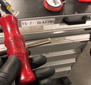 Utilisez les poignées en T pour couper l’uréthane fixant le pare-brise à la carrosserie
