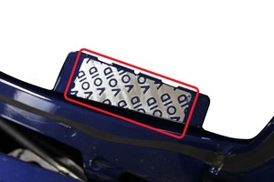 - Placez la cible contre le carénage avant et centrez-la sur l'emblème T.