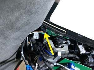 Remarque1 connecteur. Branchez le connecteur du rétroviseur intérieur et plaquez le jeu du faisceau électrique le long du bras.