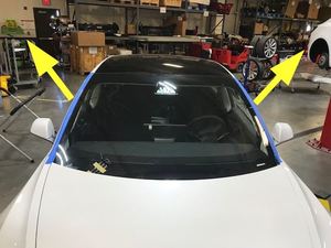- Appliquez du ruban adhésif sur l’extérieur des deux montants A pour protéger la peinture