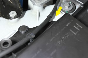 Fixez le gicleur du flexible de lave-glace près du couvercle de la tour d’amortisseur gauche