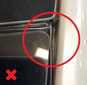 - Vérifiez l’affleurement et le dégagement du pare-brise par rapport au véhicule avant d’installer définitivement le pare-brise