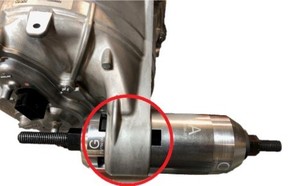 - Avec l'aide d'un assistant, utilisez le portique pour lever l’élingue de l'unité d'entraînement arrière, guider les demi-arbres à l'écart de l'unité d'entraînement arrière et séparez l'unité d'entraînement arrière du châssis auxiliaire arrière.