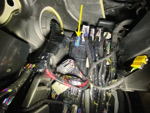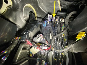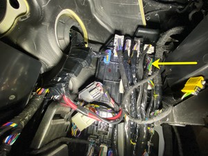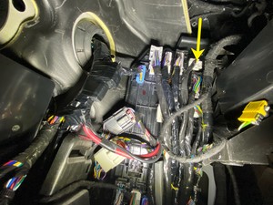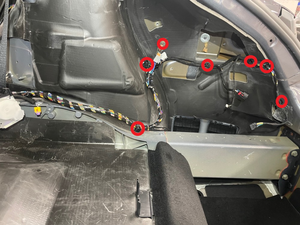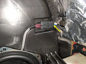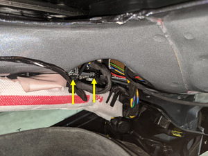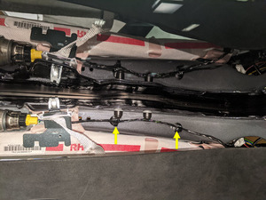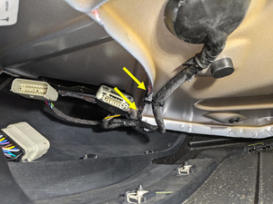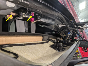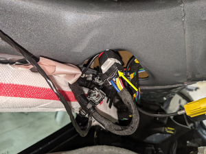 Raccordez le faisceau de carrosserie de droite à partir du faisceau de carrosserie de gauche qui se trouve sous le coussin de 2e rangée