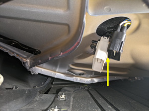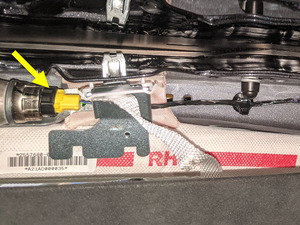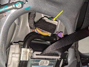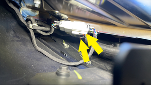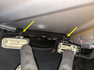 Positionnez le siège de droite de façon à pouvoir accéder au dessous, puis débranchez le faisceau de carrosserie du contrôleur de siège
