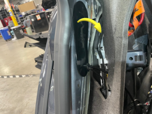 Remarque4x attaches. Déployer le pare-soleil pourrait offrir un dégagement supplémentaire facilitant le travail.