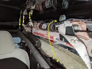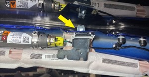 Retirez les attaches fixant l’ensemble du protège-genoux gonflable du siège de droite au véhicule