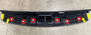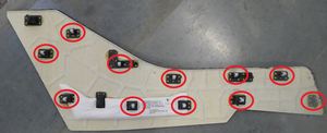 Remarque6x attaches, 4x guides_x000a_Les coins ou le bord inférieur sont de bons points de préhension pour procéder au retrait. Vous pouvez utiliser un outil pour garnitures en plastique ou seulement vos mains.