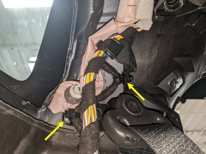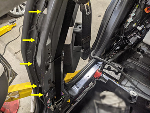 Remarque7x attaches. Acheminez la ceinture de sécurité à travers le montant B. Remplacez toutes les attaches endommagées ou manquantes