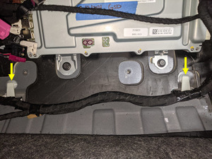 Remarque2x attaches, 2x connecteurs. Désengagez les attaches de verrouillage et soulevez le coussin du siège. Libérez les connexions. Si les sièges de la 2e rangée sont rabattus, relevez-les pour le moment.