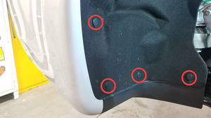 Remarque6x attaches, 2x repères. Alignez les repères puis engagez tous les attaches. Remplacez les attaches endommagés ou manquantes