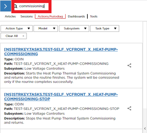 - Sélectionnez « Actions/Autodiag » et recherchez « Mise en service »