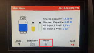 RemarqueBranchez les coupleurs au véhicule, ouvrez les coupleurs en tournant dans le sens horaire, en utilisant le « Main Menu > Recover > Verify hose connection » (Menu principal > Récupérer > Vérifier la connexion du tuyau). La machine sonnera une fois le processus terminé, le véhicule peut être laissé sans surveillance. Notez ou imprimez la quantité de réfrigérant et d’huile récupérée. Le réfrigérant récupéré doit être ~2,24 lb (1,02 kg). L’huile récupérée doit être d’environ 0,3 oz (8,87 ml). Si le niveau d’huile vidangée a augmenté de plus de 1,01 oz (30 ml), reportez-vous au tableau des pertes d’huile vidangée https://toolbox.teslamotors.com/articles/353700