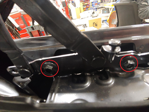 Installez les écrous (x2) qui fixent le support au capot. Répétez cette étape pour le côté gauche du véhicule.
