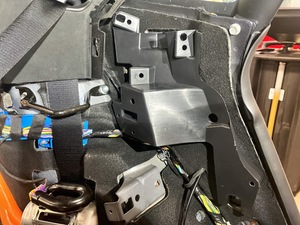 - Posez le panneau de fermeture du loquet du montant C gauche de l’ensemble de loquet de porte arrière gauche.
