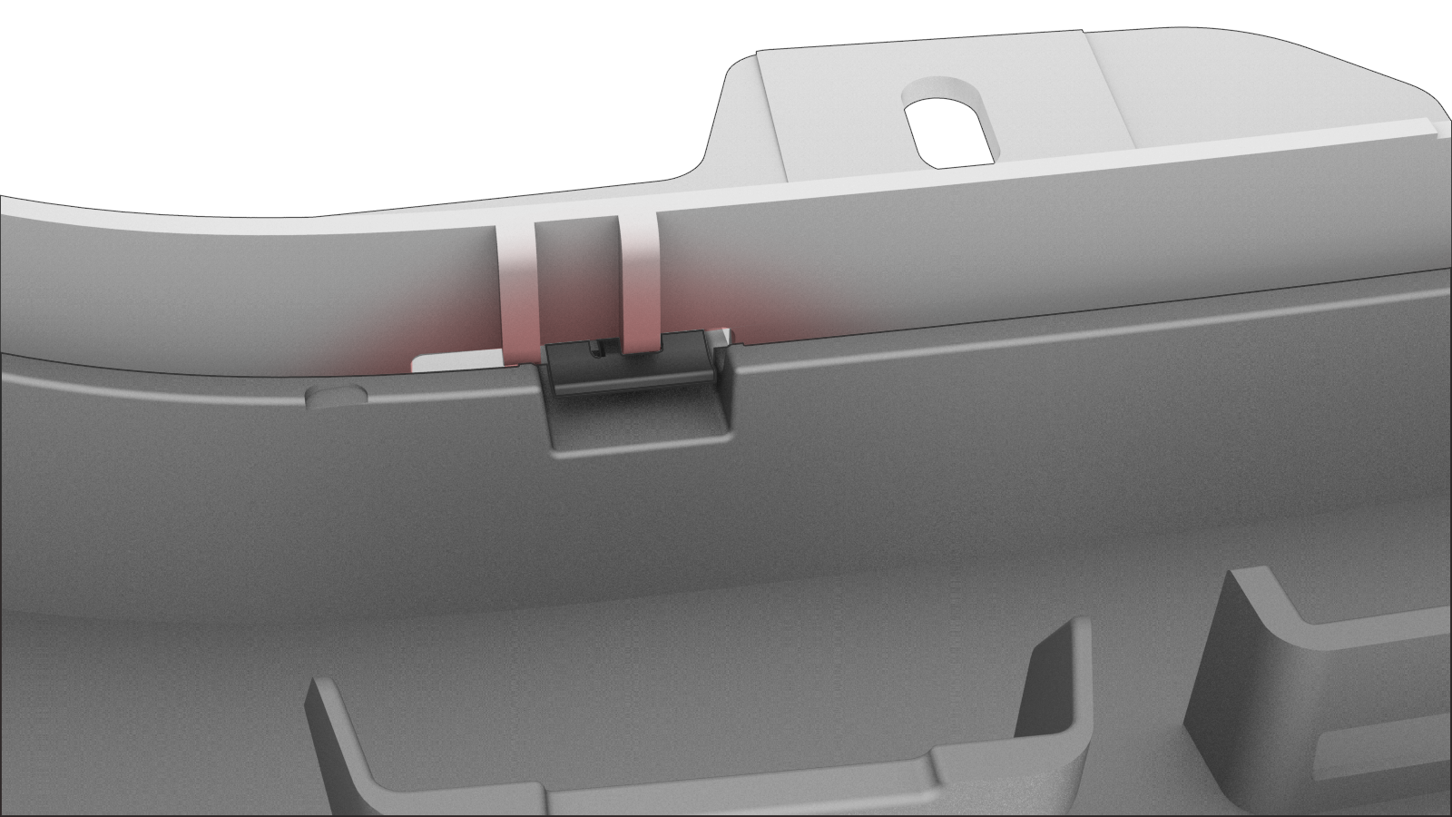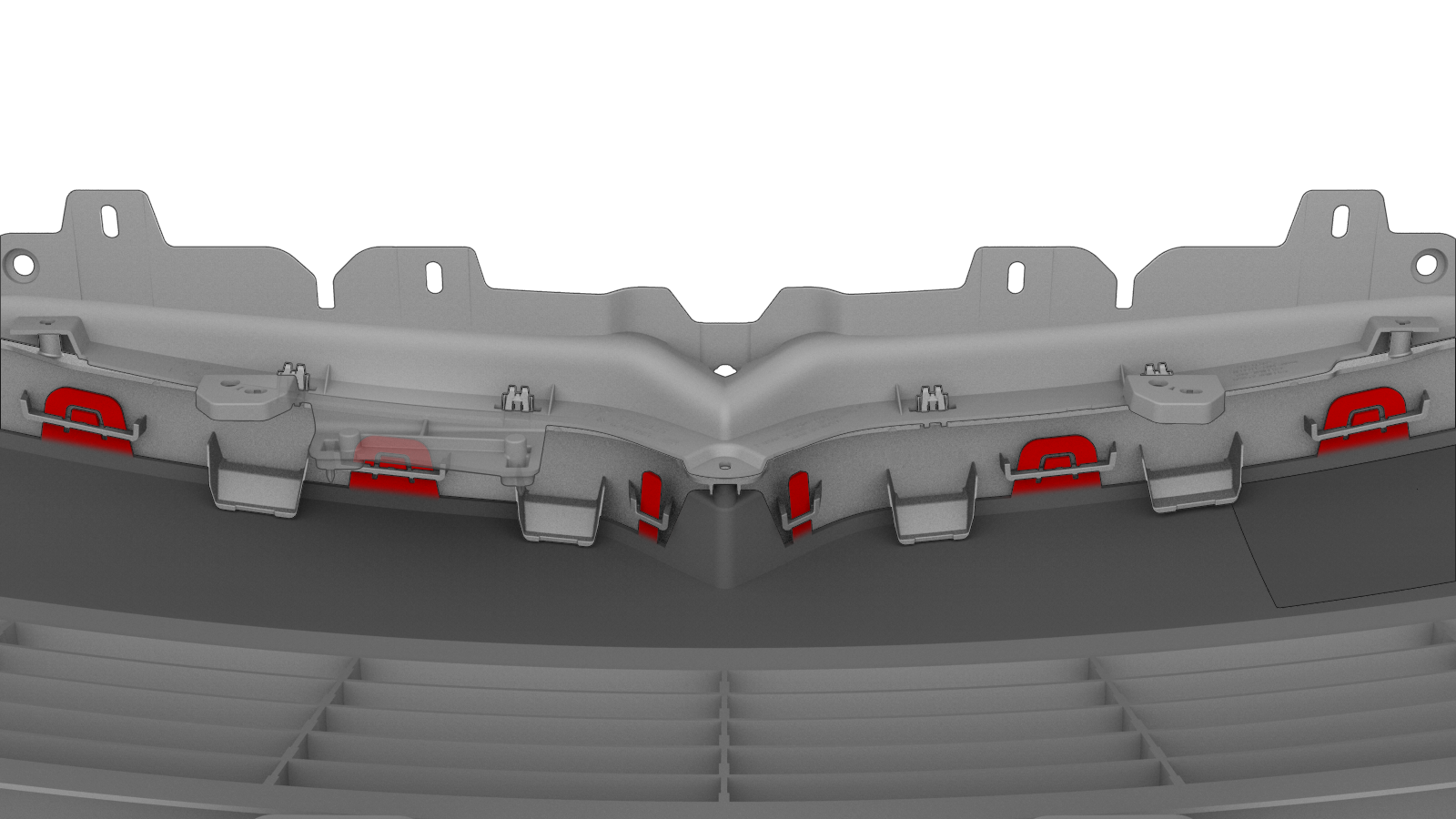 - Positionnez le support de l’écusson T sur le carénage avant, puis posez les attaches et les repères qui fixent le support de l’écusson T au carénage.