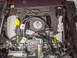 - Avec l’aide d’une autre personne, alignez et fixez complètement les attaches qui fixent la coque de dossier du siège conducteur à l’ensemble du siège.