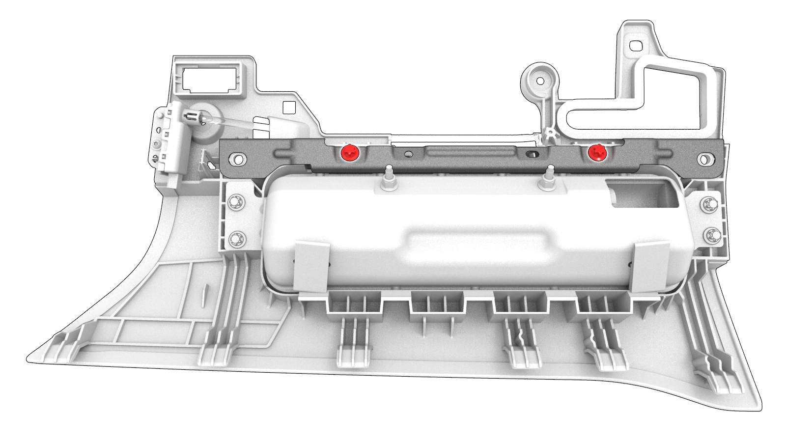 | Boulons qui fixent le coussin gonflable pour genoux du conducteur au couvercle |