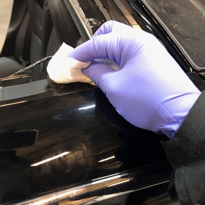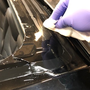 - Appliquez l’apprêt sur la vitre fixe du toit le long du trajet d’uréthane.