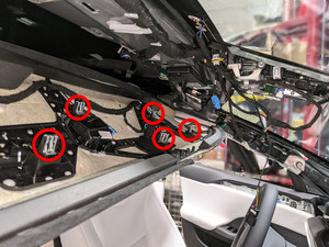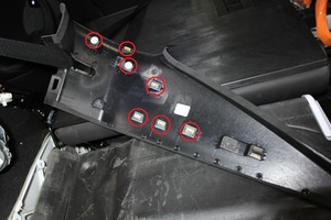 - Détachez les attaches (x7) qui fixent la garniture supérieure du montant C gauche, puis mettez la garniture de côté. Répétez cette étape pour la garniture de droite.