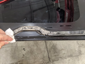 - Appliquez l'uréthane sur le bord avant et le cordon secondaire avant du toit en verre.