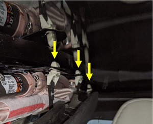 RemarqueFaites preuve de prudence à proximité de l’antenne XM, des blocs de porte-bagages de toit et des boulons des supports situés près des montants B.