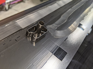 - Installez le plus grand embout que vous avez coupé sur la cartouche d'uréthane, puis appliquez de l'uréthane sur les bords latéraux et arrière, et sur les cordons secondaires arrière.